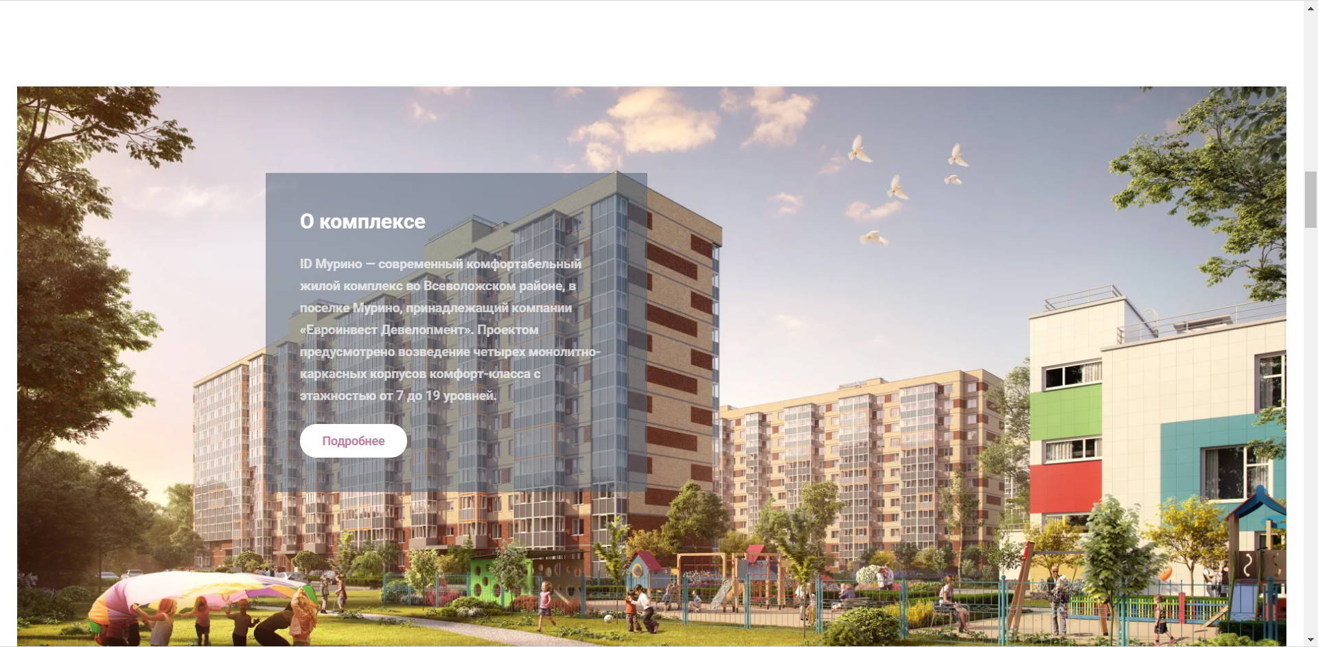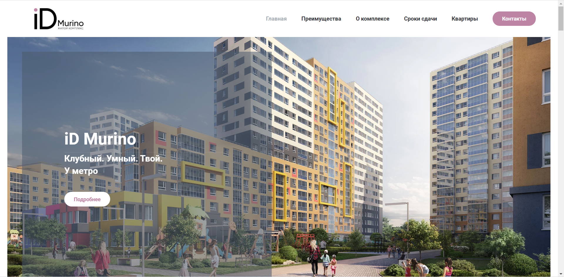 Созданный Landing Page для жилого комплекса "ID-Murino" эффективно представляет проект и помогает в продаже квартир. Сайт получил положительные отзывы от заказчика и способствует увеличению количества заявок от потенциальных покупателей.