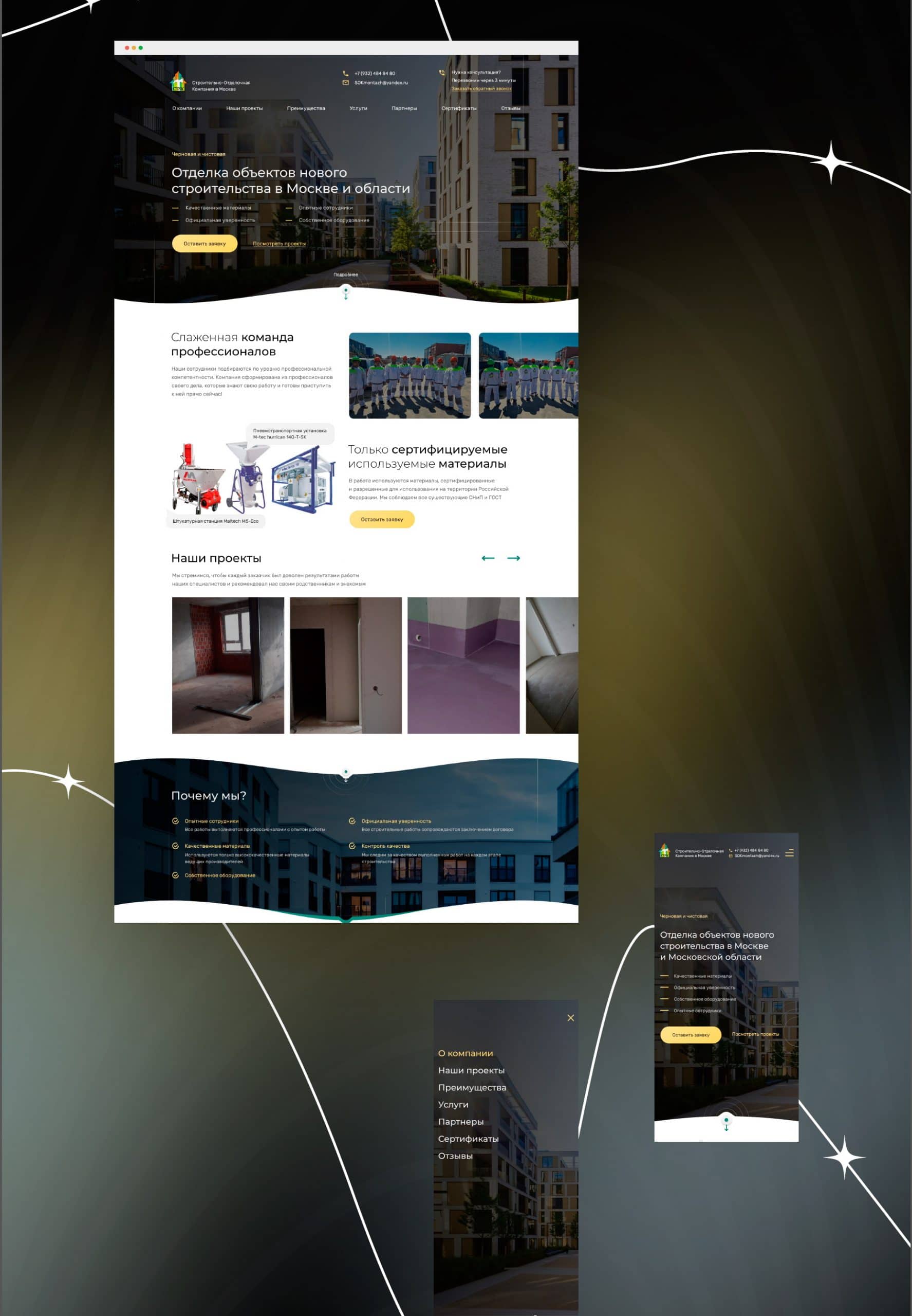 Создание Landing Page для строительно-отделочной компании с презентацией услуг и портфолио выполненных работ.